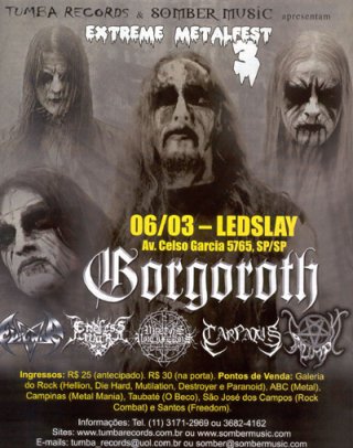 Conversando com Gaahl aprendi a correta pronuncia do nome da banda, que não é Gorgó, Gorgoróte, nem muito menos Gorgorofi É GORGÓROTI, com ênfase na segunda sílaba, e realmente é uma palavra em norueguês. Enfim foi um bom festival, graças a Tumba Records que nos tem proporcionado a oportunidade de ver grandes bandas do Metal Extremo. |