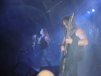 MARDUK LEDSLAY - Z/L - 04/10/2003 Por: Ryszard Rousseau III Após recolher algumas informações, cheguamos até o ponto onde já havia um pessoal esperando o ônibus. Ao entrar nele, um rapaz perguntou se era para a Led que iriamos, e após a confirmação ele nos disse que também estava indo e que iria conosco, apesar de não querer entrar por achar o Marduk um tanto comercial pro estilo(!). Ao chegar na LedSlay, mais uma vez a fila era um enigma: não sabiámos onde começava nem sequer onde terminava. Ao entrar na casa, percebemos que o local tem um estilo bem tosco e perfeito para o show. A pista também é muito interessante, com destaque para o palco que fica bem alto, distante do chão. O show que iria começar era o do Prophetic Age devido a flamula atrás da bateria. Enquanto o DJ da casa rolava um som pra deixar a galera no clima, resolvemos aguardar do lado de fora da pista, dedicado a um bar e algumas mesas. Para nossa surpresa havia uma televisão rolando um vídeo do Ozzy e ao sentir que o DJ tinha parado o som, corremos para a pista onde o Prophetic Age já se preparava para o show.